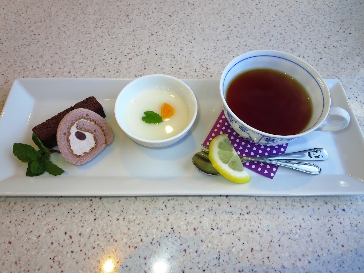 The café's lunch menu features the highly praised Ajisai Lunch, where diners can select between savory ebi tempura or a succulent hamburger. Each dish thoughtfully accompanies chawanmushi (Japanese steamed egg custard), a bowl of soup, pickled vegetables, and black rice—creating a harmonious and satisfying meal for just JP¥1,380. The perfect combination of textures and flavors will transport you to the heart of Japanese culinary tradition while allowing you to indulge in a modern twist.